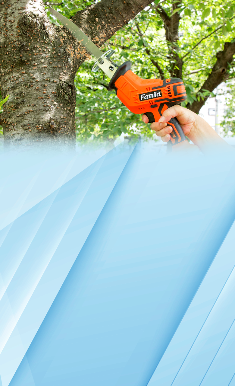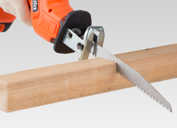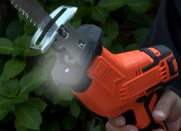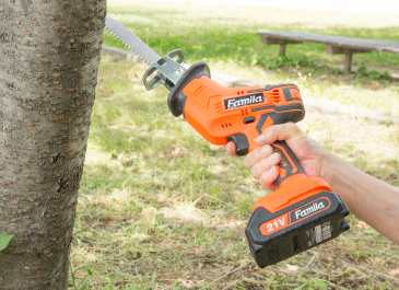 持ち運びに便利な充電式コードレス電動ノコギリ。