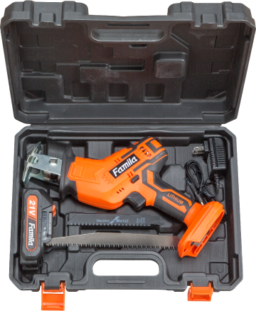 ファミラ 電動ノコギリ 充電式コードレスのこぎり6点セット 替え刃2枚付き