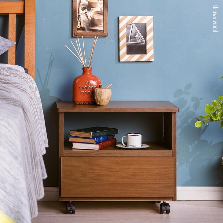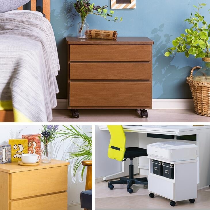 ベッドやソファの横に置いて、本やリモコン、飲み物などを置くのに便利です。引き出しには小物類を整理整頓して収納できます。