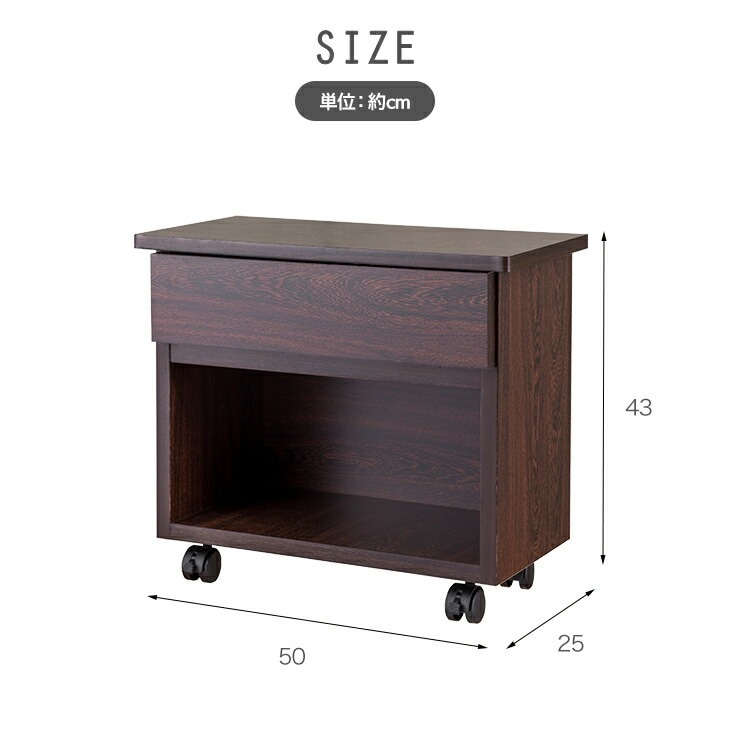 サイズは約幅50×奥行25×高さ43cm、重さは約7.5kgと扱いやすいです。本体はプリント化粧繊維板で、傷や汚れに強く、お手入れも簡単です。