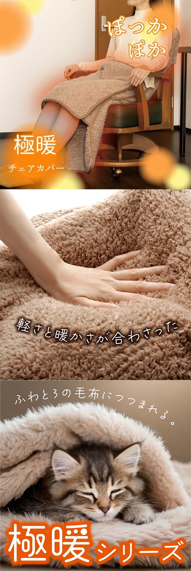 ●仕様/毛足が長く、ボリュームがあり、体温によって温まった空気をしっかりと溜め込むので、暖房の必要がないほどのあたたかさ。