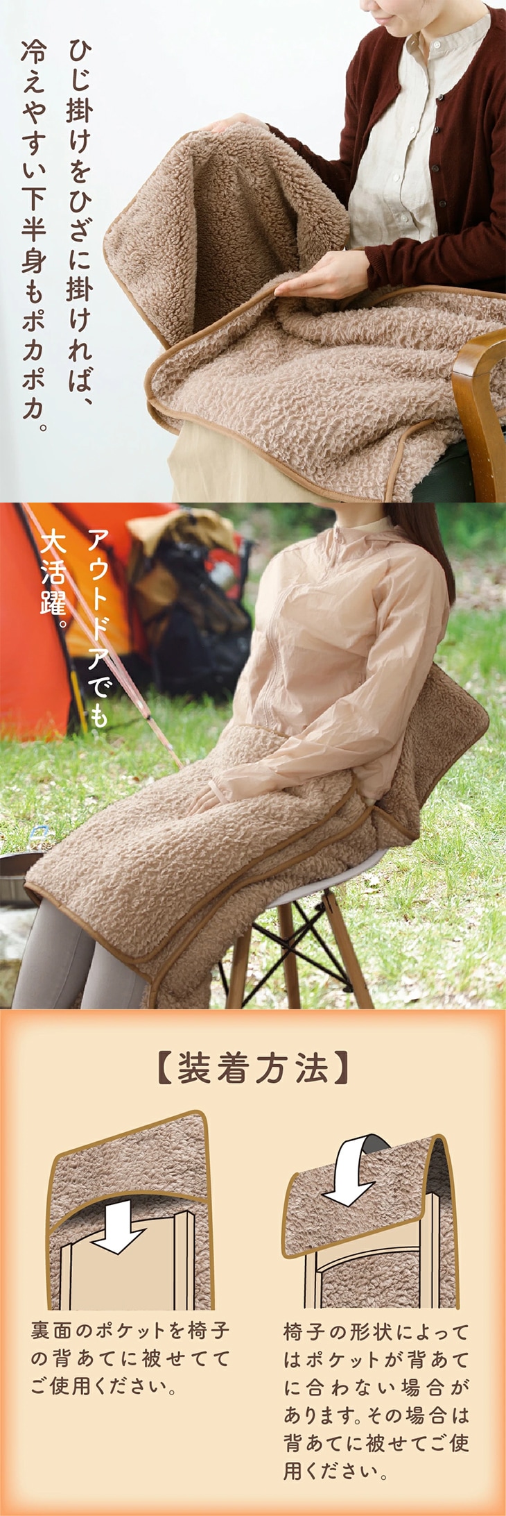 アウトドアでも大活躍。チェアカバーが便利なブランケットに。
