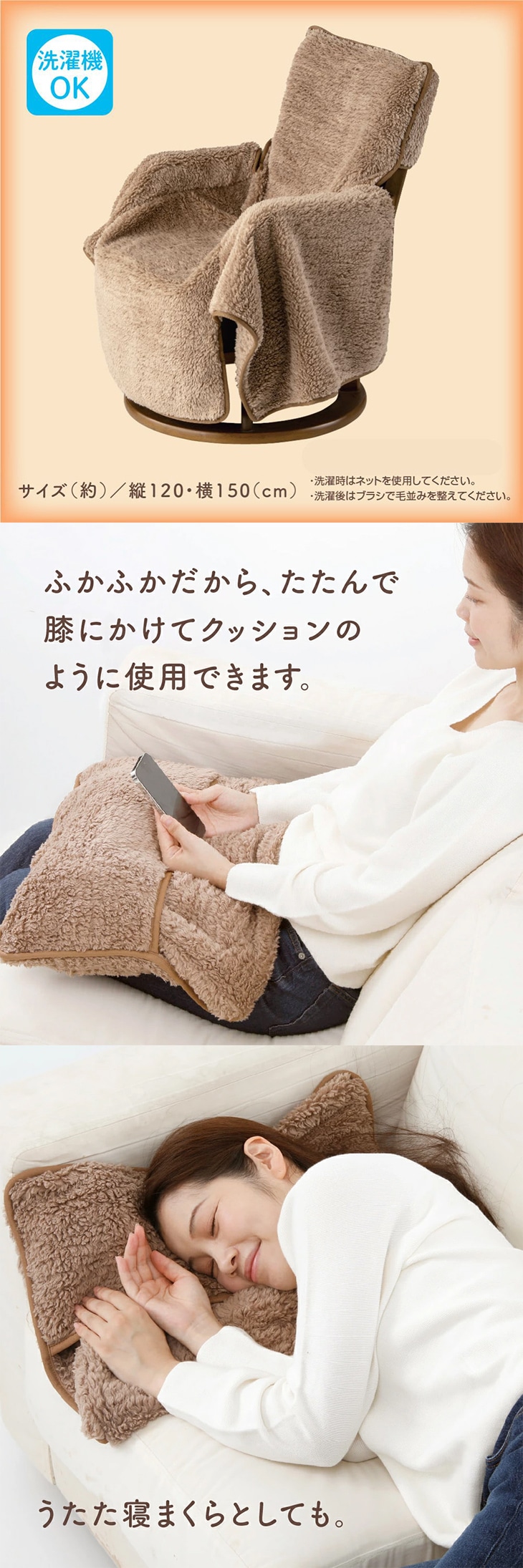 ひざに掛ければ、冷えやすい下半身もポカポカ。