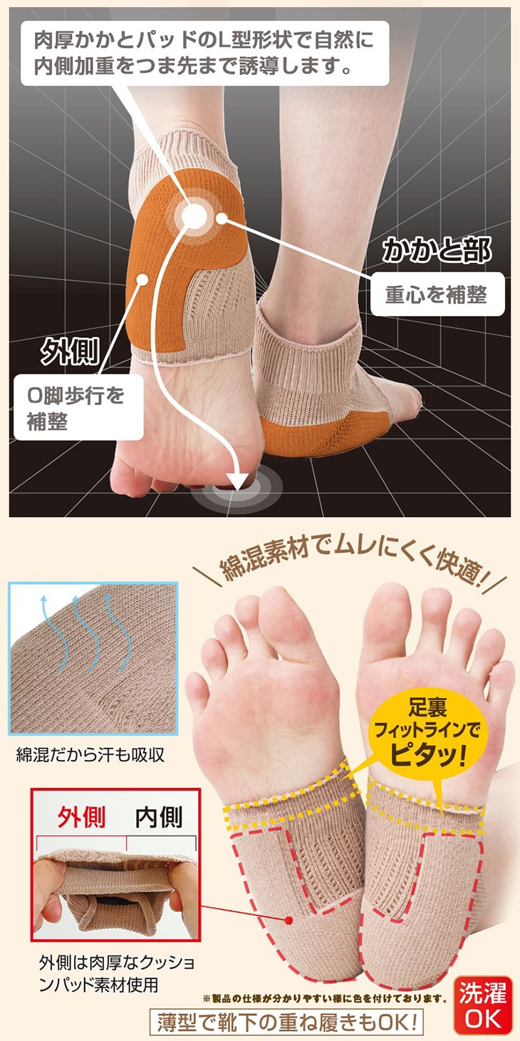 履くだけで正しい歩行をサポート。足腰ピンとサポーター 4枚組