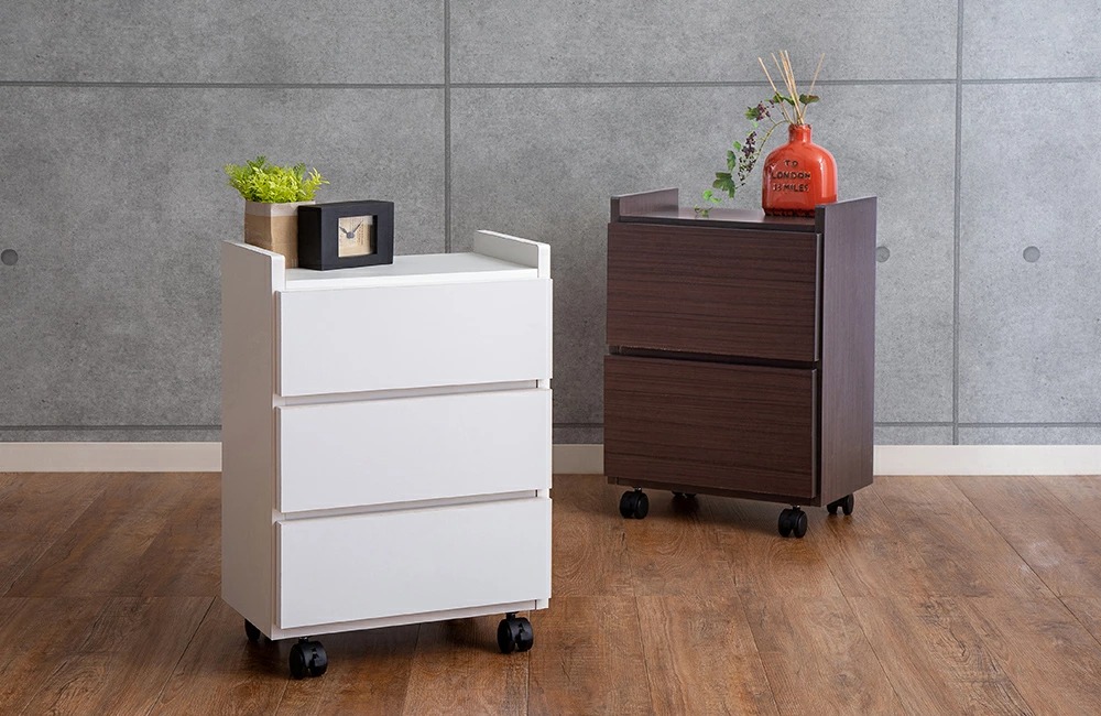 ソファやベッド脇にも便利なワゴンチェスト。