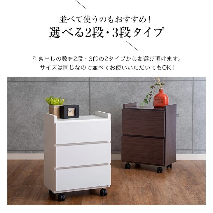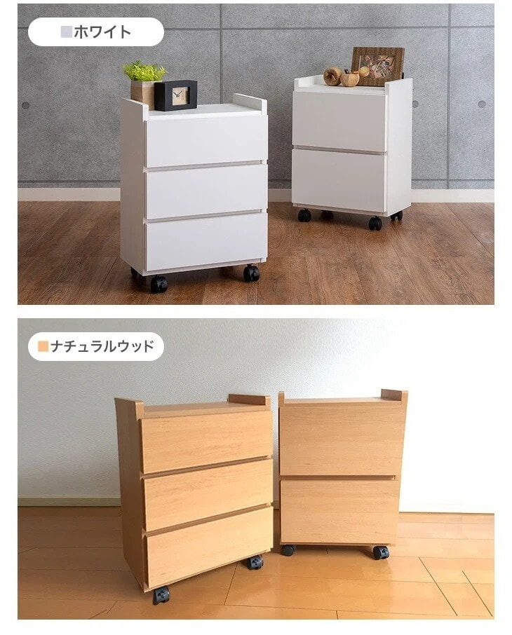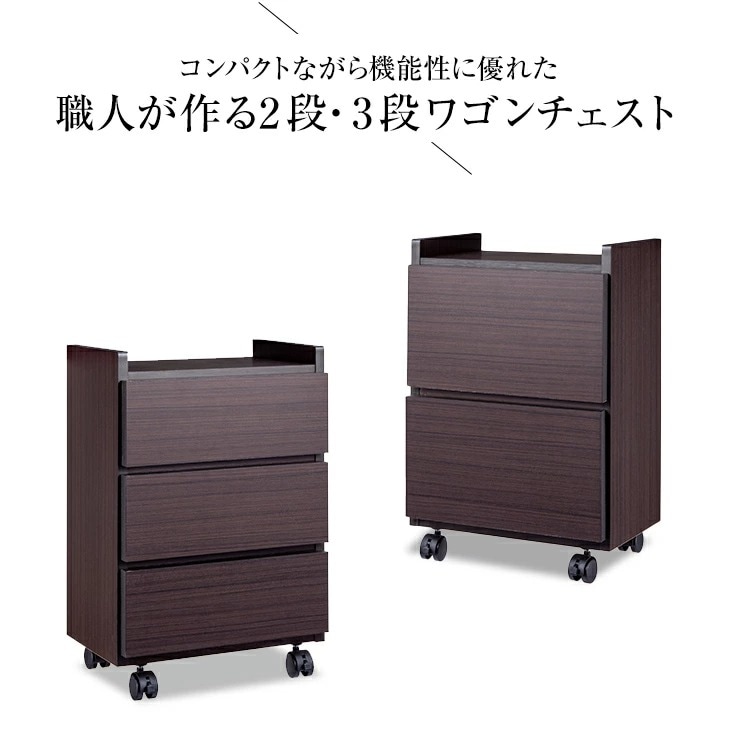 大川産 職人が作るワゴンチェスト 2段
