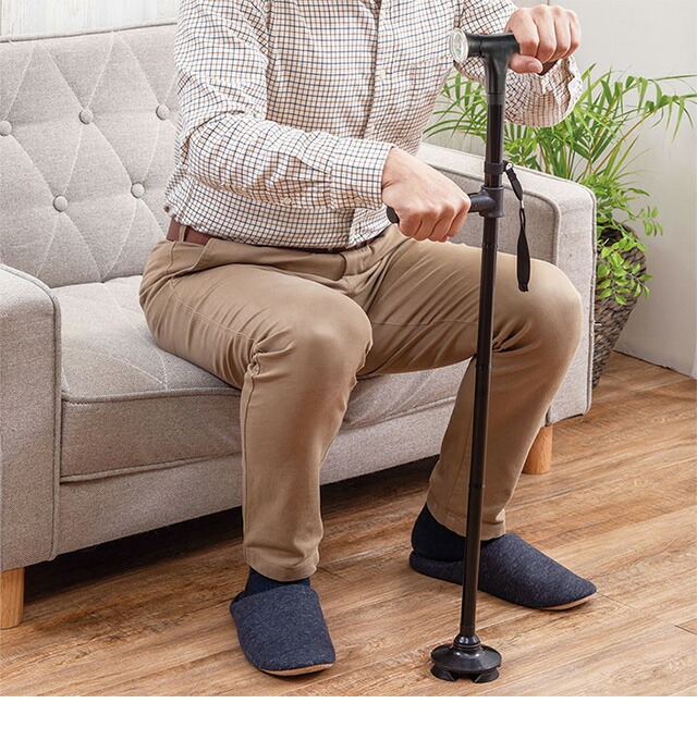 安心の4点接地!立ち上がりをサポートするセーフティーステッキ