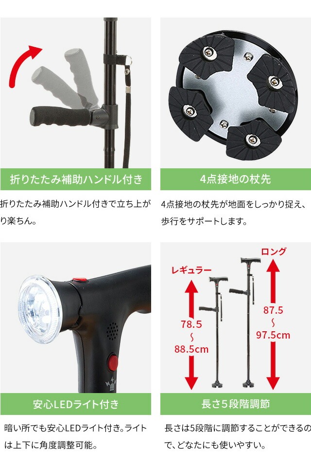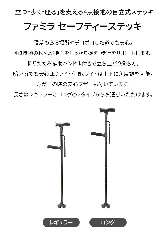 ファミラ 立ち上がり補助ハンドル付き セーフティーステッキ LEDライト・ブザー付き