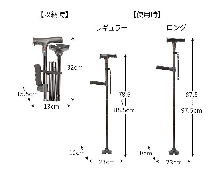 ●サイズ/[使用時]約幅23×奥行10×高さ(レギュラー)78.5~88.5・(ロング)87.5~97.5cm、[収納時]約13×15.5×32cm