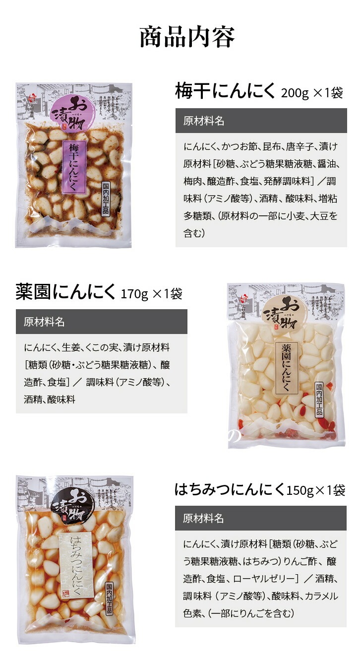 3種のにんにくセット 各1袋 計3袋 梅干・薬園・はちみつ 代金引換不可