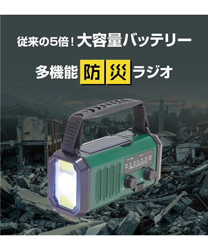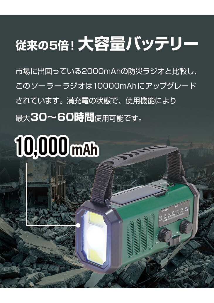 3WAY充電5WAY機能大容量10000mAh多機能防災ラジオ