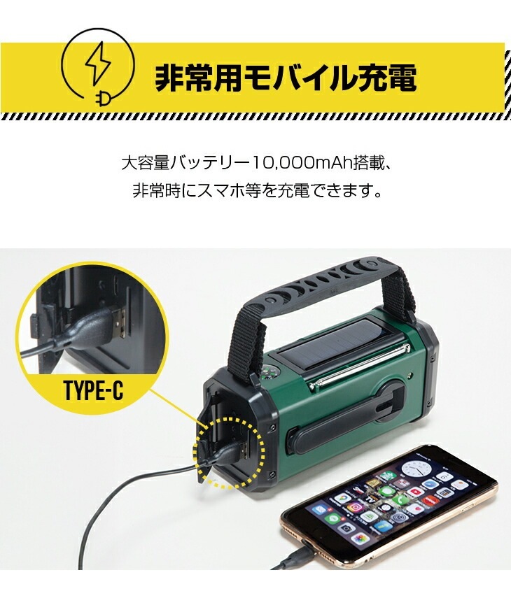 3WAY充電で安心!大容量10,000mAh多機能防災ラジオ