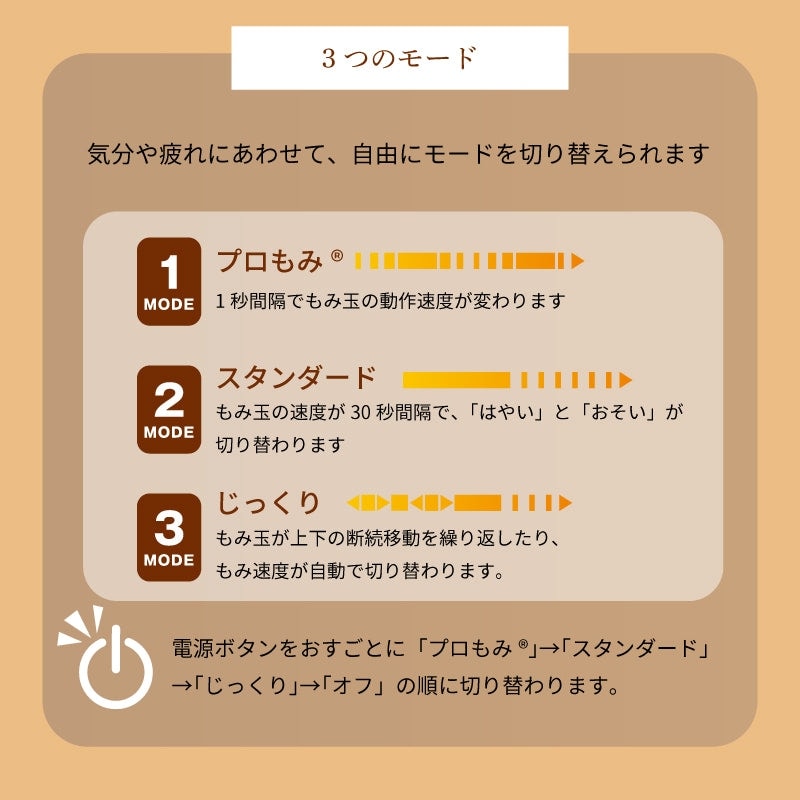 「ジザイス」の最大の魅力は、その名の通り自由自在に形が変わること。8段階のリクライニング機能で、座椅子のようにカチカチと角度を調整できるため、ベッドやソファの上、床に置いてなど、どんな場所でもあなたにぴったりの体勢でマッサージを受けられます。もみ玉にはヒーターが内蔵されており、じんわりと人肌の温かさで筋肉をほぐします。また、もみ玉が接するカバーは取り外して洗えるので、いつでも清潔な状態を保てます。座面保護カバーも付いているため、座り心地も快適です。