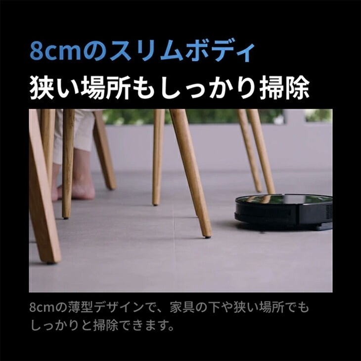 8cmのスリムボディで狭い場所もしっかり掃除可能。