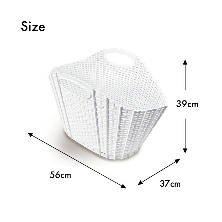 買い物カゴとしてはもちろん、たっぷり入るのでまとめ買いにも便利。また、お子さまのおもちゃ入れや、かさばる洗濯物を入れるランドリーバスケットとしても最適です。車に積んでおけば、レジャー用品の持ち運びにも重宝します。