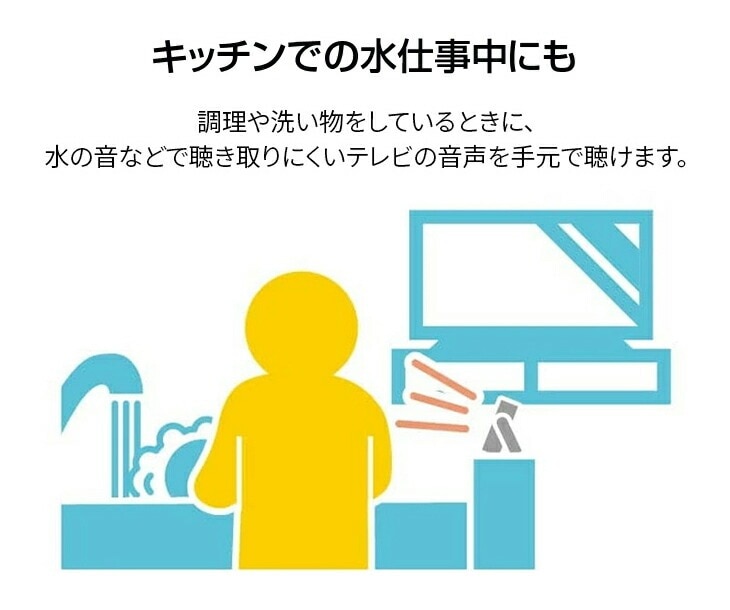「テレビの音量が大きすぎると家族に迷惑かも…」「耳が遠くなって、テレビの音が聴き取りにくい…」そんなお悩みを解決する、手元でテレビの音声がはっきり聴けるスピーカーです。テレビにBluetooth送信機をつなぐだけで、離れた場所からでもクリアな音声を楽しめます。キッチンで料理をしながら、寝室でくつろぎながら、いつでも好きな場所でテレビを楽しめます。