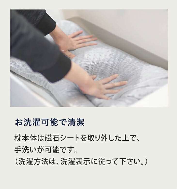 磁石シートを取り外せるので、本体はお洗濯が可能。いつでも清潔な状態を保てます。さらに、中素材の出し入れでお好みの高さに調節できるので、自分にぴったりの枕にカスタマイズできます。