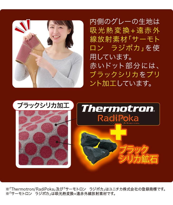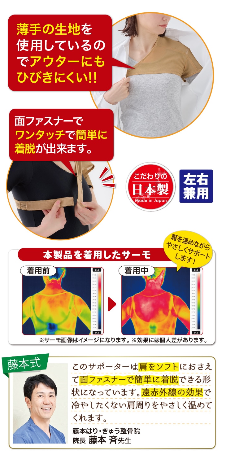遠赤外線を放射するサーモトロン ラジポカ ユニチカ®を肌側に使用しているので、冷えから肩を守ります。