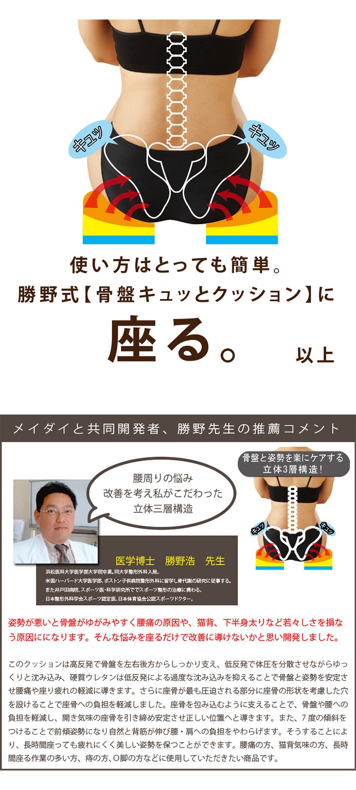 正しい姿勢が美しさを創る。勝野式 座るだけで骨盤キュッとクッション